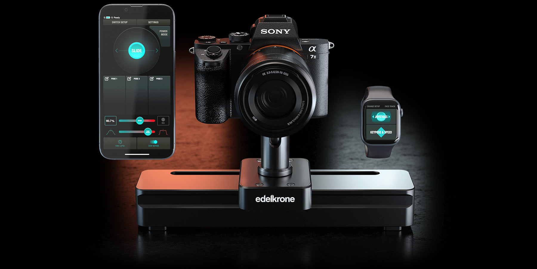 To control from a phone, tablet, watch or Mac (with M processor) use edelkrone App.